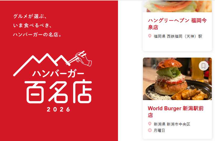 - 食べログ ハンバーガー 百名店 選出(新潟駅前店:2024年、2026年の2期受賞)