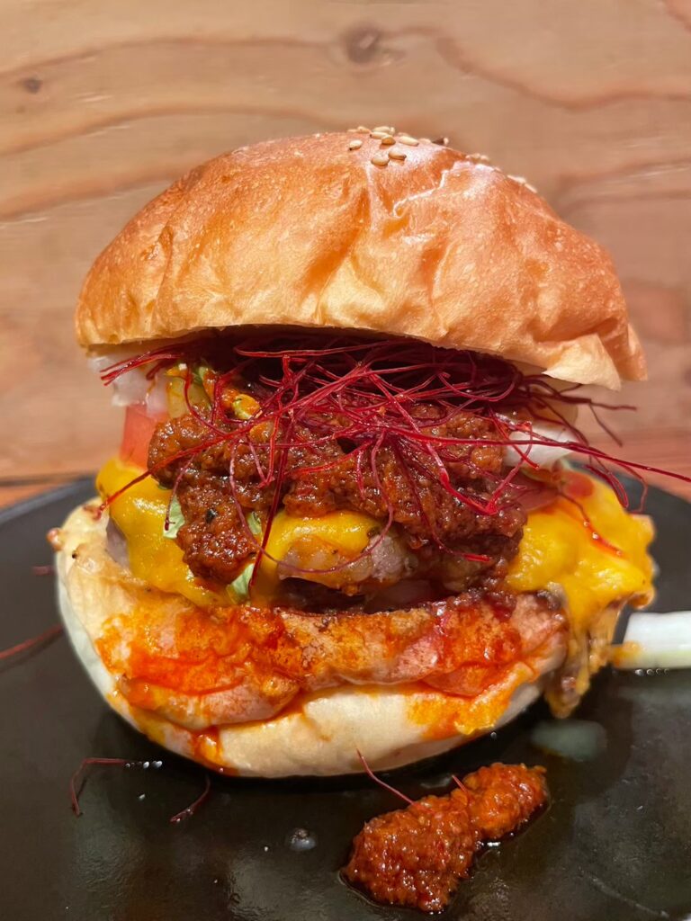 Q. 激辛グルメ界に「新ジャンル爆誕」の噂!その衝撃の秘密は? A. 激辛バーガーが実現!難関仕入れの麻辣ソース×ステーキパテの「辛旨」究極バランス