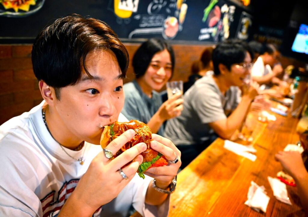 「バーガー屋のバイトってどんな感じだろう?と不安でしたが、入ってみたらスタッフ同士の距離がとても近くて、すぐに馴染めました。何より、自分が作ったバーガーを食べたお客様が笑顔になる瞬間が最高です!」(池袋西口本店・大学生スタッフ)